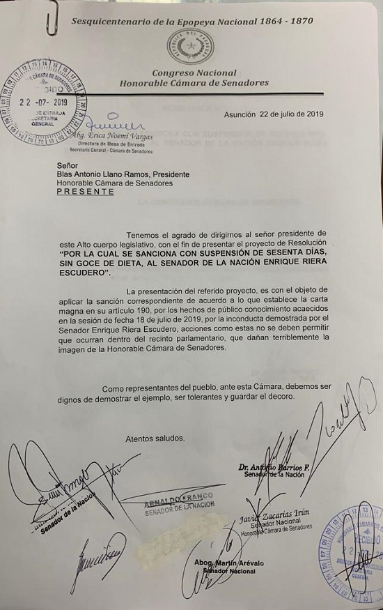 En la segunda convocatoria se analizarán los pedidos de sanción a los senadores Enrique Riera y Paraguayo Cubas.