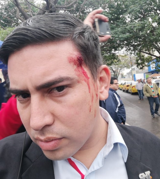 Un cronista del canal C9N presenta una herida en la zona de la sien, a causa de un proyectil.
