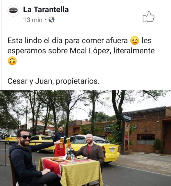 Una pizzería en inmediaciones de la Municipalidad de Asunción brindó un almuerzo en medio de la avenida Mcal. López.