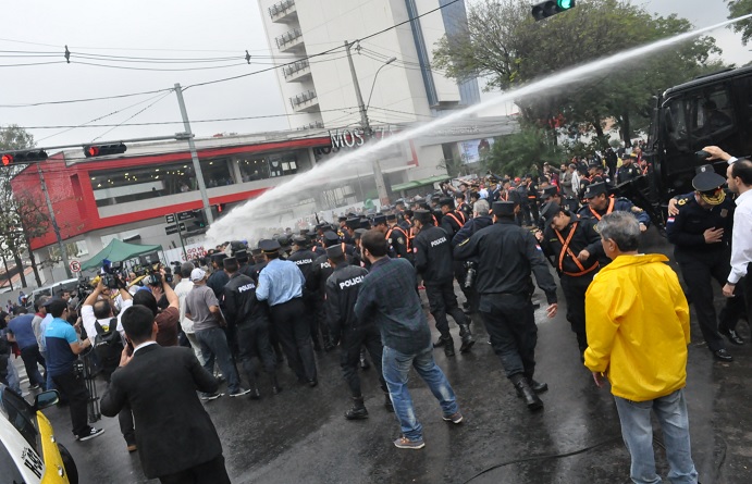 Luego de los primeros desmanes, los taxistas avanzaron y trataron de tomar la sede de la Comuna Capitalina.