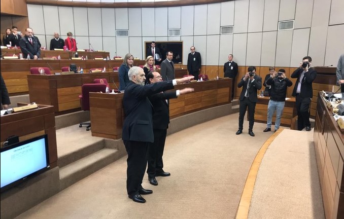 #Ahora, el titular de la Honorable Cámara de Senadores, senador @BlasLlanoPy, preside la sesión extraordinaria, para tomar juramento a los senadores suplentes Miguel Fulgencio Rodríguez Romero y Ramón Catalino Retamozo Delgado.