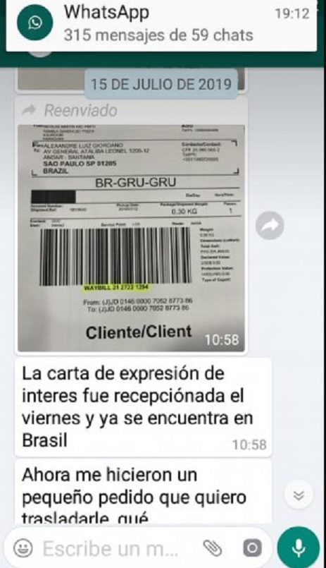 Según lo dado a conocer por Última Hora, en el chat del 9 de mayo, días antes de la firma del polémico acuerdo energético, el abogado en cuestión enviaba mensajes al por entonces titular de la Ande.