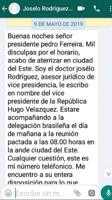 Hay que señalar que la aplicación WhatsApp cuenta con la opción de recuperar los chats de copias de seguridad cuando un usuario cambie de dispositivo móvil. Si bien no hizo referencia a esa posibilidad, “Joselo” se limitó a decir que borró los mensajes y que luego puso a disposición su nuevo teléfono celular, que no utilizó en las conversaciones que sí mostró el expresidente de la ANDE y que ya tienen como elementos de prueba en la Fiscalía.