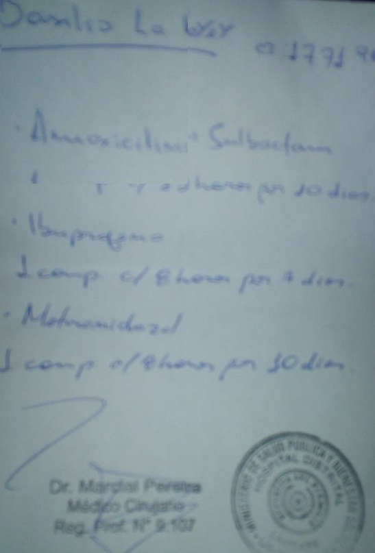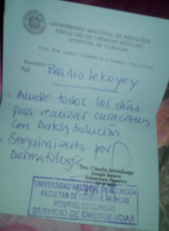 Así también se acercaron hasta el Hospital Distrital de Lambaré, donde los profesionales que lo atendieron le brindaron la misma explicación.