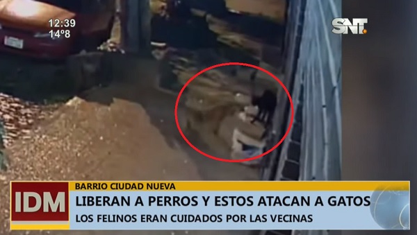 Las mujeres detallaron a C9N que dos hombres llegaron al barrio y soltaron a los canes para que ataquen a los felinos, que viven en las veredas.