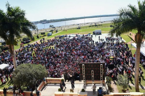 «Pido disculpas, si me he equivocado», expresó el mandatario ante los cientos de seguidores que coparon la explanada del Palacio de Gobierno con bombos, cánticos y banderas del Partido Colorado.