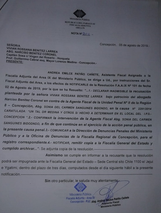 “En reiteradas ocasiones hemos intentado comunicarnos con el director del IPS a fin de que nos diera una explicación sobre lo ocurrido a mí y a mi hija, pero siempre recibíamos una negativa de entrevistas diciéndome que no podía atendernos o que no se encontraba”, refirió.