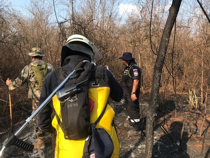 “Estamos trasladando un tanque de4 10.000 litros hasta un punto aquí dentro del monte, vamos a limpiar la zona, con motosierra, desmalezadoras y machetes y vamos a instalar ahí el tanque para que de ahí se surta el helicóptero con el Bambi”, explicó.