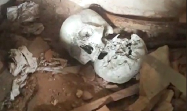 De acuerdo a los datos, el lugar fue invadido el 24 de agosto de este año. El grupo personas que habita en las inmediaciones, halló cráneos y algunos huesos entre escombros de lo que era un baño de la antigua casa.