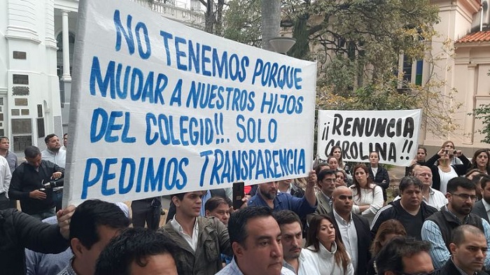 Los padres se estaban manifestando desde hace varios días, con el objetivo de exigir transparencia en el colegio privado católico, pues afirmaban que existe un deterioro de la calidad educativa y sospechas de malos manejos administrativos, por parte de la directora ahora destituida.