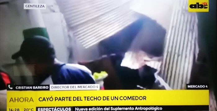 El director del Mercado 4, Cristian Bareiro, confirmó que cerca del mediodía de este jueves, parte de un techo de un comedor se desplomó, mientras trabajadoras atendían a sus comensales en el lugar