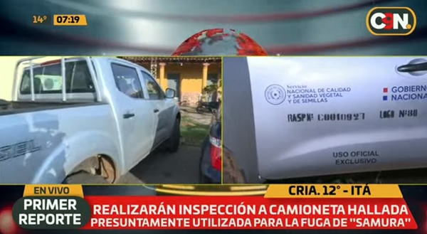 La camioneta de marca Nissan, modelo Frontier, se encuentra en la comisaria 12 de Itá. El rodado tiene la inscripción del Servicio Nacional de Calidad Vegetal y de Semillas (Senave).