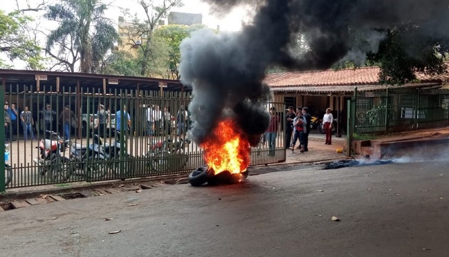 Los desvinculados se manifiestan en estos momentos con la quema de cubiertas frente a la sede de la Dirección de Tránsito de la comuna esteña, indica La Clave.