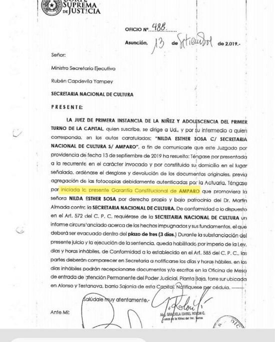 El hecho se registra luego de que en los medios de prensa Abc, Última Hora. La Nación y 5 DÍAS, indicaron que los pobladores que están contra el corredor obtuvieron un amparo para evitar que los trabajos del MOPC prosigan.