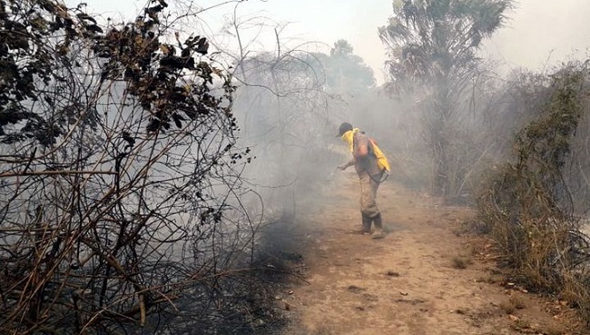 Indicó que una gran cantidad de trabajadores, como bomberos y topadoristas, luchan por contener las llamas en la frontera con Bolivia.