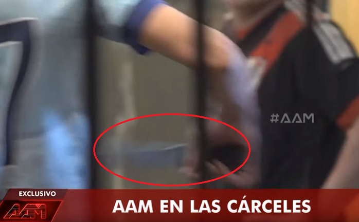 En una de las grabaciones reveladas, se puede apreciar claramente cómo un hombre cuenta con un arma blanca, de considerables proporciones, en un pabellón ocupado por integrantes del Clan Rotela.