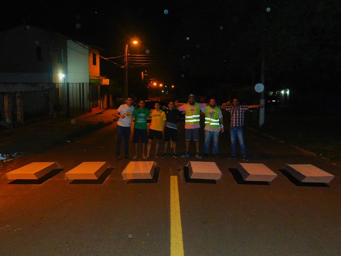 Los mismos encontraron una forma innovadora y nunca antes vista en Paraguay de crear conciencia, pues pintaron una franja peatonal en 3D, que genera una perspectiva visual, la cual se asemeja a un obstáculo, por lo que instintivamente, tanto automovilistas como motociclistas se ven obligados a reducir la velocidad.