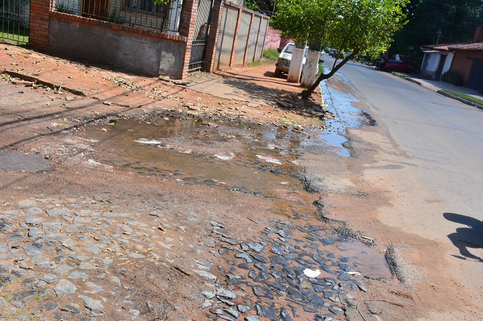 Los caños rotos destrozan calles. Foto: Mirtha Ozuna.