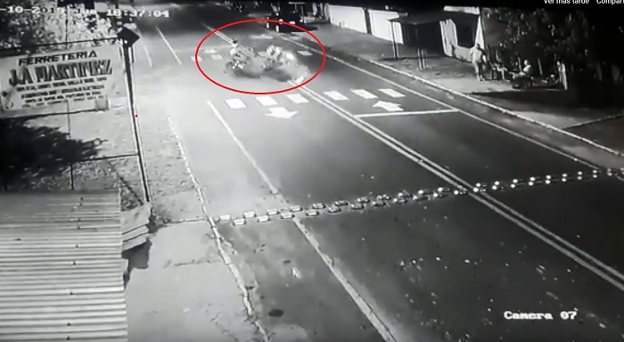 En el video se ve que uno de los conductores circulaba a gran velocidad y cuando atravesó el reductor de velocidad, perdió el control, pasando al carril contrario, momento en que se produjo el choque frontal contra la otra motocicleta, según informó ABC Color