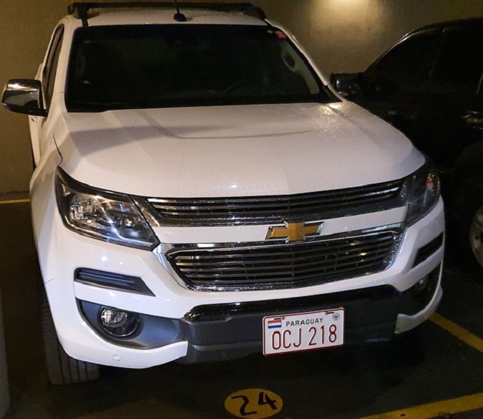 Camioneta incautada. Foto: Twitter @senad_paraguay