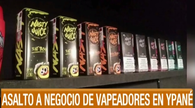 Dos personas armadas y a bordo de una motocicleta, asaltaron una tienda de venta de vapeadores e insumos. Se llevaron cien botellas de esencias, dos tanques para vape, equipos mods y un celular. #DiaADiaPy en vivo https://t.co/trMHT6h5xx#TelefuturoPy pic.twitter.com/BWEzTZw3Qr