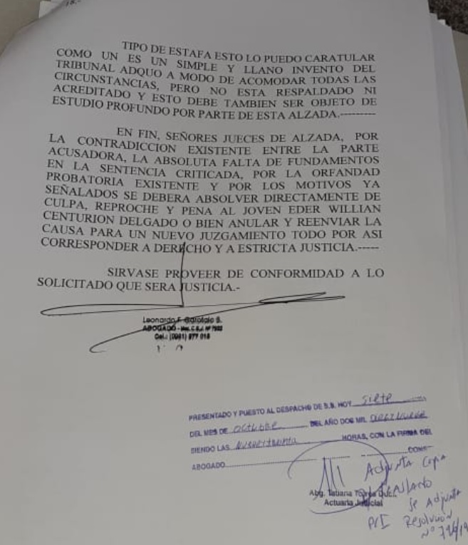 El fallo del Tribunal de Sentencia se conoció el 17 de setiembre y el 7 octubre se presentó la apelación.