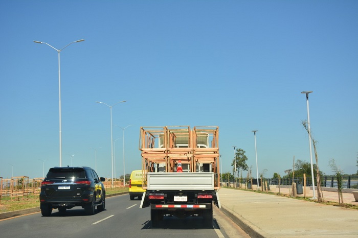 Camión que lleva las protecciones a ser instaladas.
