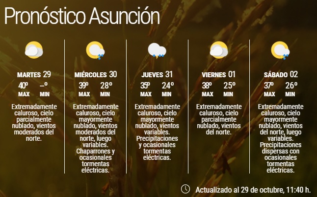 Al menos hasta el sábado, las temperaturas se presentarán por sobre los 35 grados, como se puede ver en la imagen.