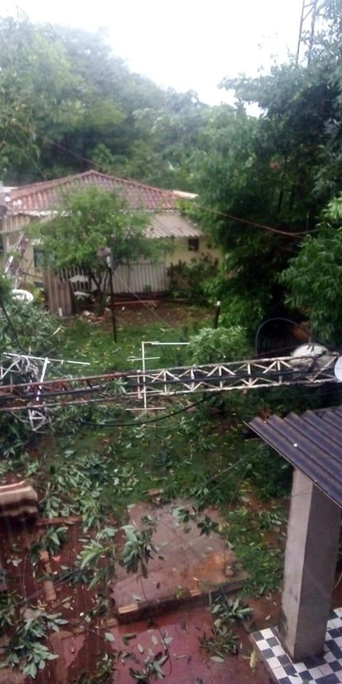 La tormenta con fuertes vientos que azotó este jueves al departamento de Alto Paraná dejó varios destrozos a su paso y dos personas heridas.