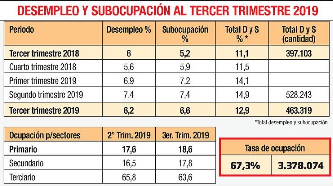 La información del medio citado indica que según los datos de la Dirección General de Estadística, Encuestas y Censos (DGEEC), la tasa de desempleo se redujo con respecto a los dos trimestres anteriores de este año. Sin embargo, la cifra todavía se encuentra por encima del 6% de la Población Económicamente Activa (PEA) que alcanzó en el tercer trimestre del año pasado. La PEA es de 3.602.340 habitantes.
