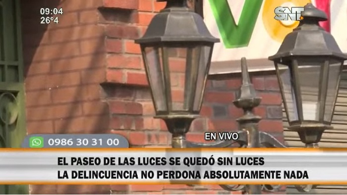 No obstante, delincuentes aprovecharon la noche para llevarse los focos de los faroles que se encuentran sobre la calle 25 de Mayo, y su prolongación Estrella.