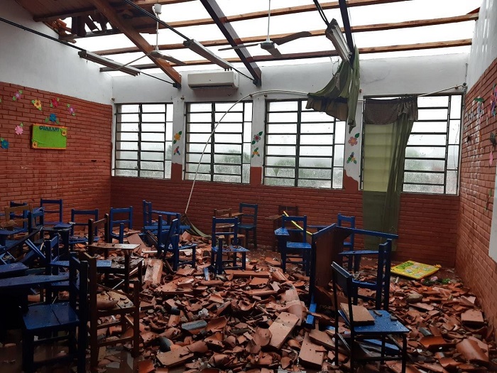 En este sentido, el colegio Miguel Ángel Rodríguez de la ciudad de Ñemby quedó totalmente destechado y con la estructura en ruinas.