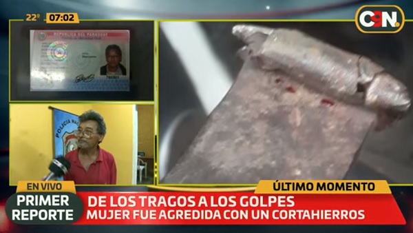 Hombre detenido (izq), objeto utilizado para golpear (der). Foto: C9N.
