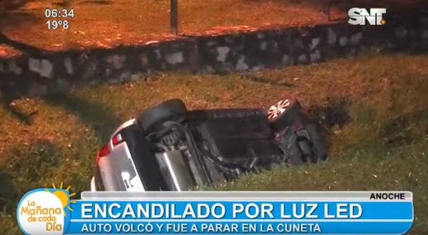 Luz led encandiló a conductor y causó vuelco de automóvil