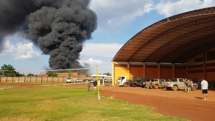 El hecho produjo un gran incendio por la gran cantidad de elementos inflamables que se encontraban en el depósito. Bomberos trabajan en el lugar para aplacar el fuego que no da tregua.