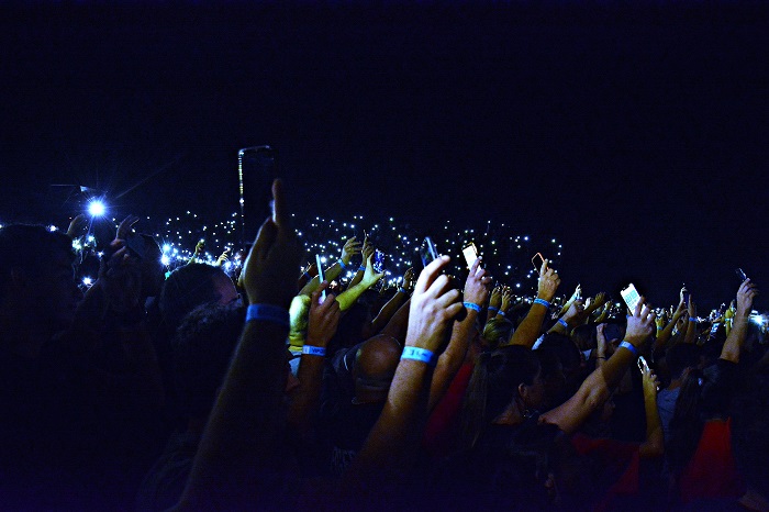 El emotivo momento en el que el público formó parte del show fue cuando todos levantaron sus celulares y con las linternas prendidas acompañaron el tema “She has no time”.