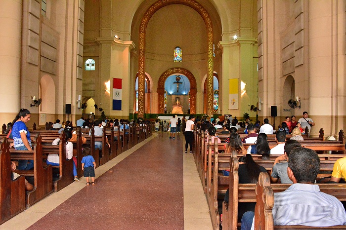 Importante cantidad de peregrinantes estaban dentro de la basílica rezando el santo rosario.