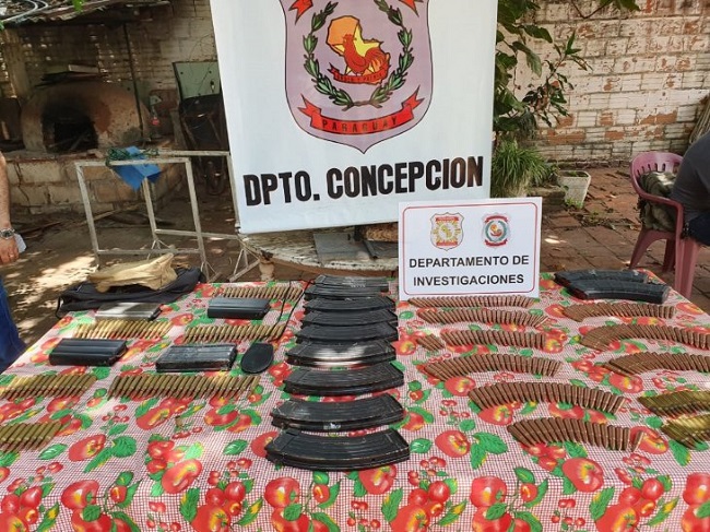 En el lugar hallaron nueve cargadores de fusiles AK 47, dos cargadores de fusiles Galil, cuatro fusiles y unos 360 cartuchos de varios calibres, reportó Última Hora.