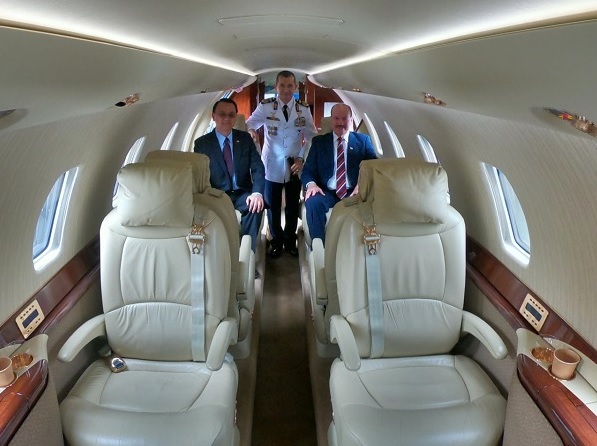 La aeronave puede transportar a 10 pasajeros, informó a los medios el Comandante de la Fuerza Aérea Paraguaya, el General del Aire, Juan Pablo Paredes.