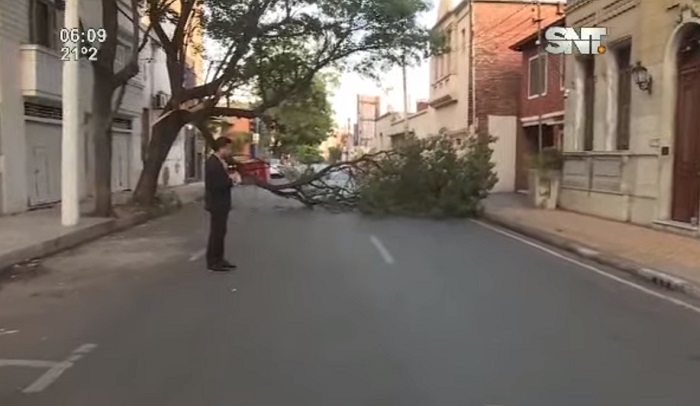 Un árbol cayó en plena calle del centro de Asunción, luego de que un camión de gran porte que pasaba por la zona lo rozara.