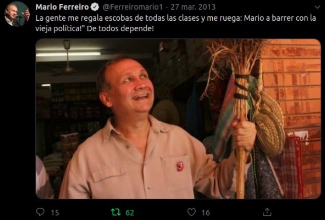 Al parecer, no llegó a barrer con toda la “vieja política”. Un tuit de antaño, cuando fue candidato a Presidente de la República.