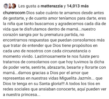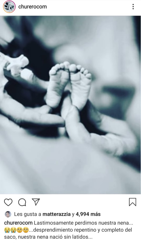 “…desprendimiento repentino y completo del saco, nuestra nena nació sin latidos…”, informó, quién últimamente estuvo nuevamente en boca de todos durante su participación en el programa Baila Conmigo. El inesperado desenlace se dio, aparentemente, durante la noche del lunes y las primeras horas de la jornada.