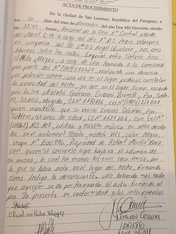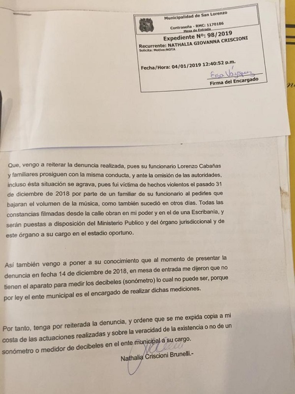 Denuncian a «planillero confeso» por polución sonora. El caso corresponde a San Lorenzo.