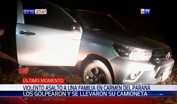 El Suboficial Inspector Rodrigo Vera, subjefe de la Comisaría novena de Carmen del Paraná, mencionó a Radio 1000 AM, que cuatro personas, con arma de fuego en mano, redujeron a una familia que se encontraba en su vivienda y se llevaron la suma de G. 5.000.000, además de aparatos celulares.