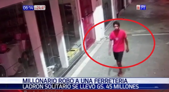 Un hombre ingresó al local y se alzó con de G. 45.000.000 que se encontraban en el mostrador del comercio. Cámaras de seguridad de negocios aledaños grabaron al principal sospechoso del robo.