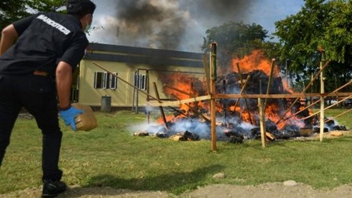 Al oeste de Yakarta, todo el pueblo de Tangerang fue drogado, luego de que la policía de Indonesia quemara unas 3,3 toneladas de droga que habían confiscado el pasado 2 de febrero en las aduanas del aeropuerto.