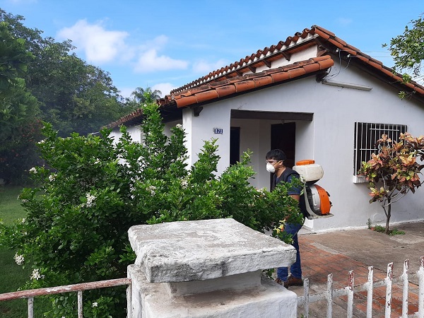 Los funcionarios de Tecnomyl, la Municipalidad de Villeta y el Hospital Distrital lideraron la actividad, que incluyó la recolección de hules, latas, limpieza de veredas, poda de árboles, arbustos y la fumigación de los patios y veredas de las diferentes viviendas de las zonas abarcadas, con el apoyo de los vecinos beneficiarios.