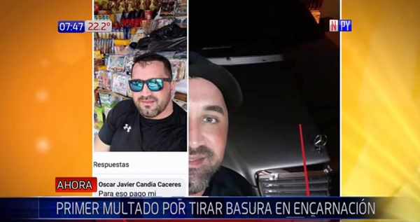 Candia fue visto cuando lanzaba su basura desde su vehículo sobre las calles Carlos Antonio López casi Tomás Romero Pereira. Fue multado por el hecho de “depósito de basura en la vía pública”, informó Noticias Paraguay.