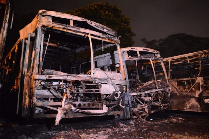 El lunes, en un patio baldío de Mariano Roque Alonso, unos 15 buses chatarras en estado de abandono fueron consumidos por un incendio. El fuego casi afectó a las viviendas de la zona y los bomberos tuvieron que realizar una evacuación para evitar que las personas inhalen el humo.