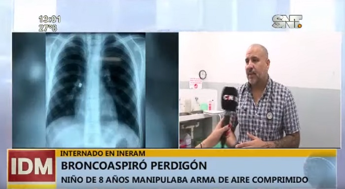 En Caazapá, un niño estaba jugando con un arma de aire comprimido y en un descuido aspiró uno de sus balines, por lo que tuvo que ser llevado de urgencias al Ineram, donde tras una endoscopia se confirmó que el objeto pequeño quedó alojado en uno de sus pulmones.
